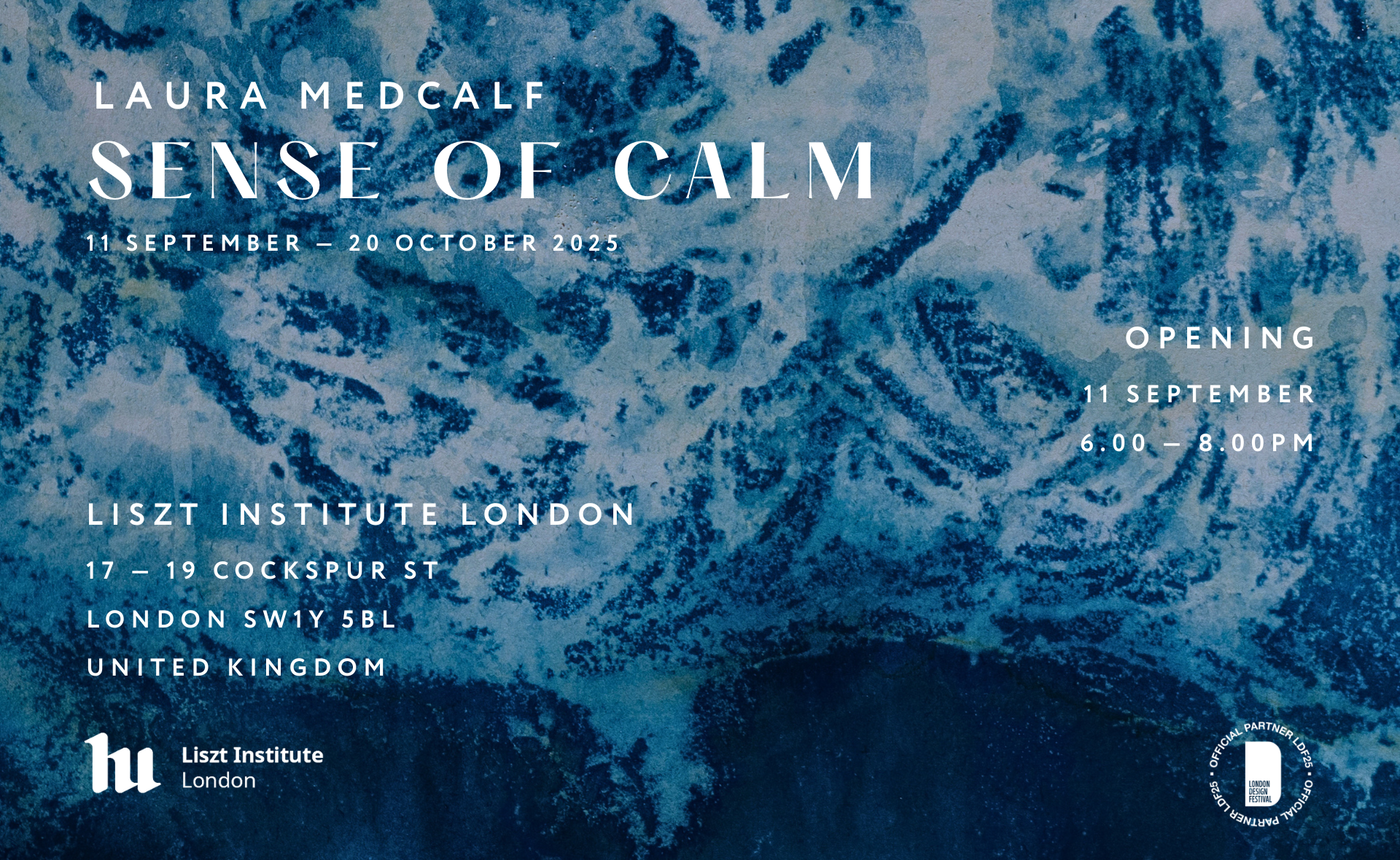 Join us for the opening of Laura Medcalf’s second London solo show, SENSE OF CALM, at the Liszt Institute London on 11th September, 6.00 – 8.00 pm.