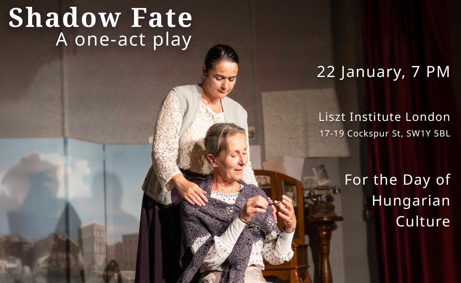 On the occasion of the Day of Hungarian Culture, we warmly invite you to the one-act performance, Shadow Fate on January 22, 2026, at Hungary House, produced by Klebelsberg Castle Chamber Theatre.